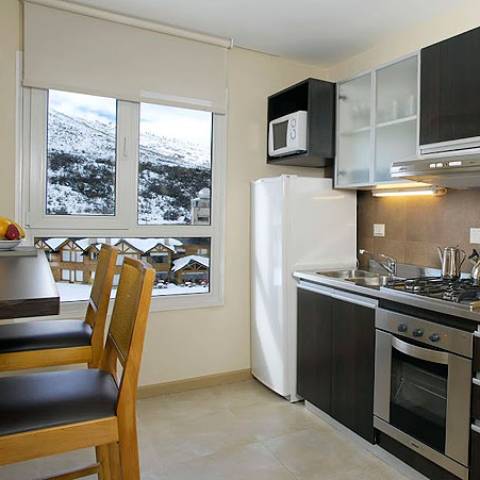 El balcón cuenta con parrilla y juego de mesa y sillas. La calefacción de la unidad es por losa radiante con caldera, vista al Cerro Catedral.