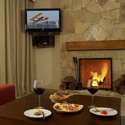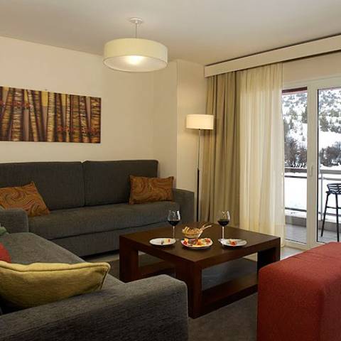 Sala de estar com 2 camas e opção para adicionar uma cama adicional, Lareira, LCD, cozinha totalmente equipada com geladeira, microondas, forno, fogão elétrico, liquidificador, torradeira e talheres. 2 banheiros totalmente equipados com amenidades, secador de cabelo e toalheiro aquecido.
