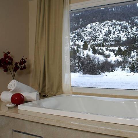A varanda tem um piso térmico, churrasqueira e mesa com cadeiras. O aquecimento é aquecido por piso com caldeira, Cerro Catedral View